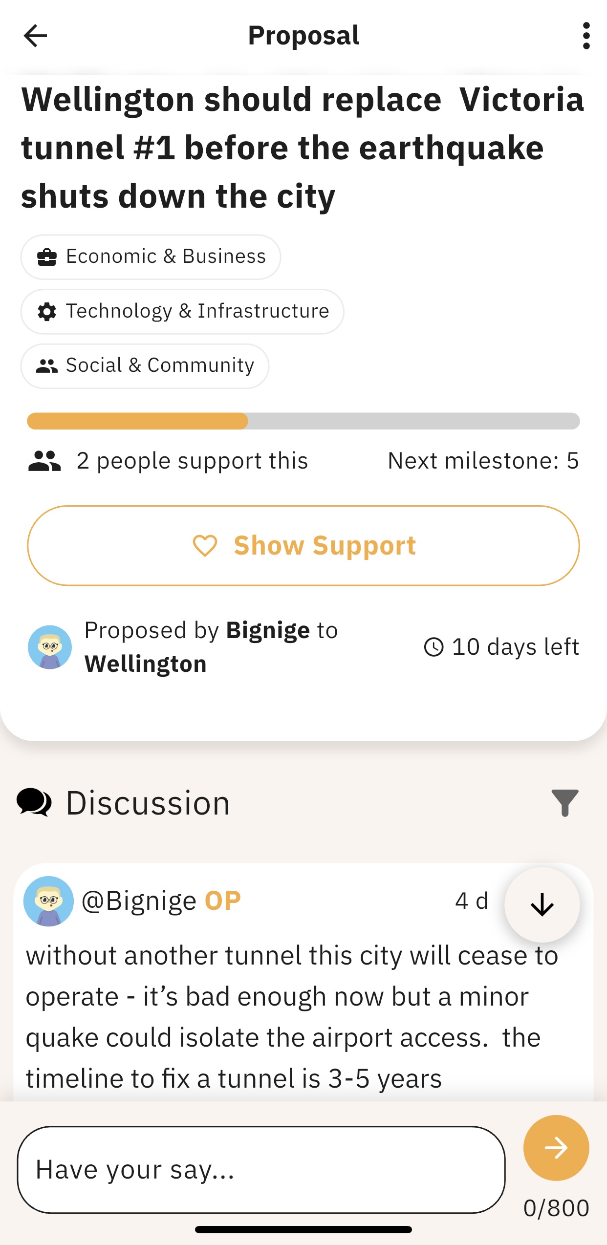 A Proposal is an idea for change that has been raised by a Buzzy user. Proposals that gain widespread support become Topics and eventually Results.